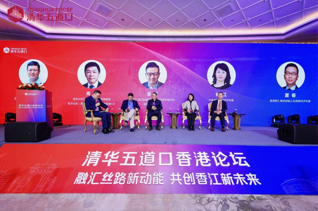 清华大学五道口金融学院特聘教授,凯丰投资(香港)创始人、CEO兼联席CIO高滨,清华五道口金融EMBA香港同学会秘书长,高盈科技董事长吴超,中银香港首席经济学家钟红,香港智汇集团创始人及首席经济学家夏春出席并参与圆桌对话讨论。清华大学五道口金融学院院长助理张伟主持论坛。